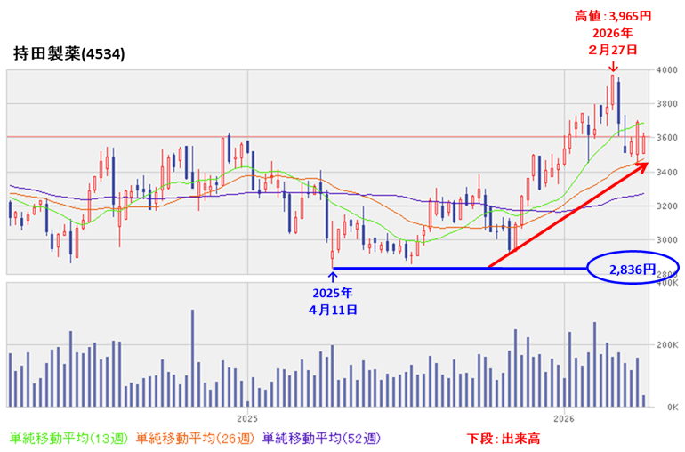 今回は、東証プライムから医薬品業種の持田製薬です。