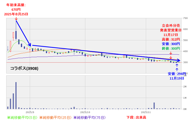 (前回(2025年8月実施)の分売):【立会外分売は買いか?】コラボス(3908) <2025年8月実施>