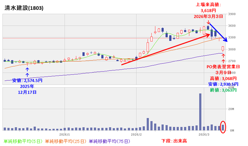【公募増資・売出(PO)は買いか?】清水建設(1803)